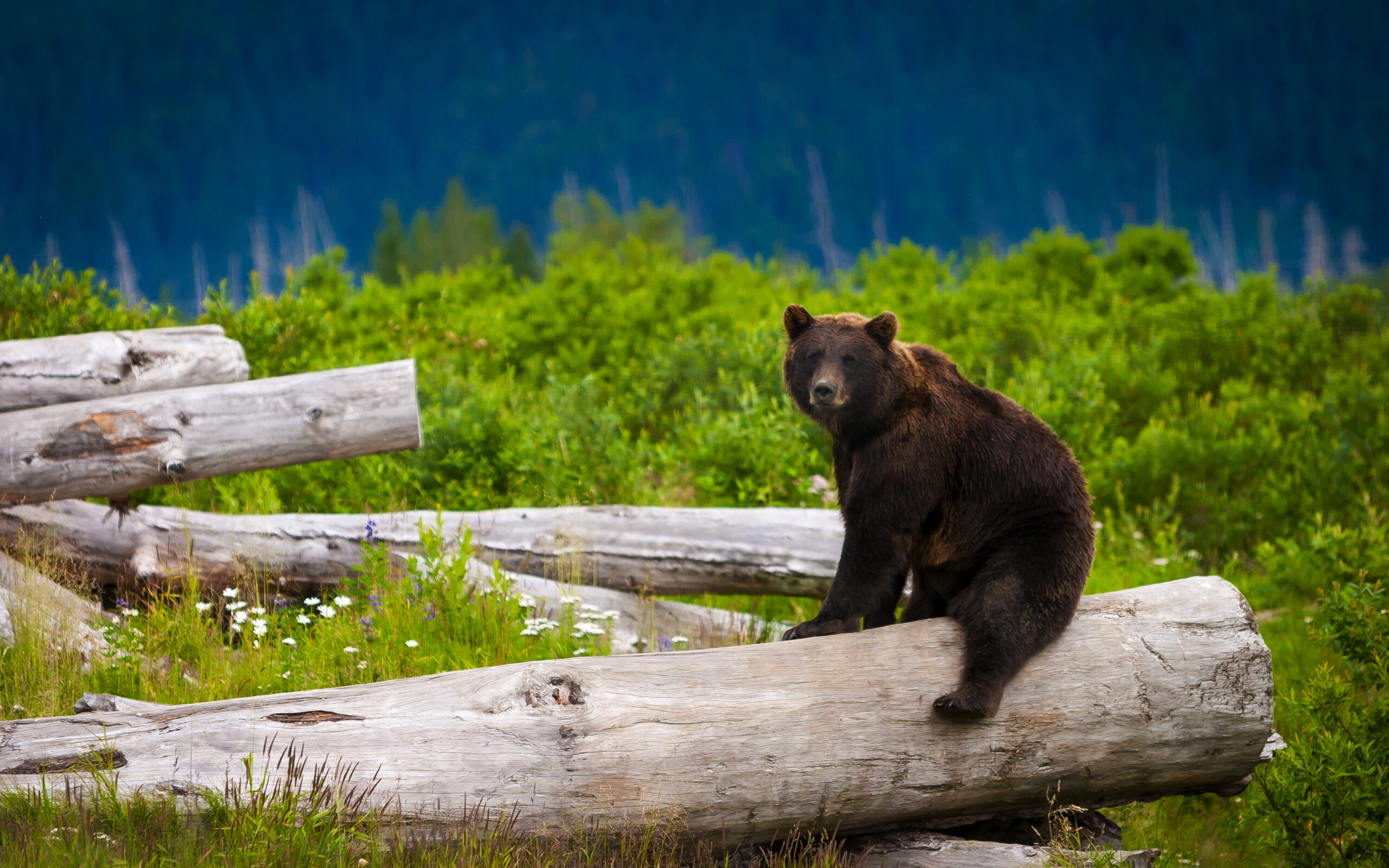 I parked the car and hiked up a trail and where I came upon a couple of brown bears playing in a nearby stream. I took several photos as the bears splashed around, unsure if they were playing with each other, or simply taking a cool bath. The play time stopped after a few minutes and one of the bears disappeared over a little berm. To my delight, one of the bears found a nearby log and settled in for an afternoon nap.